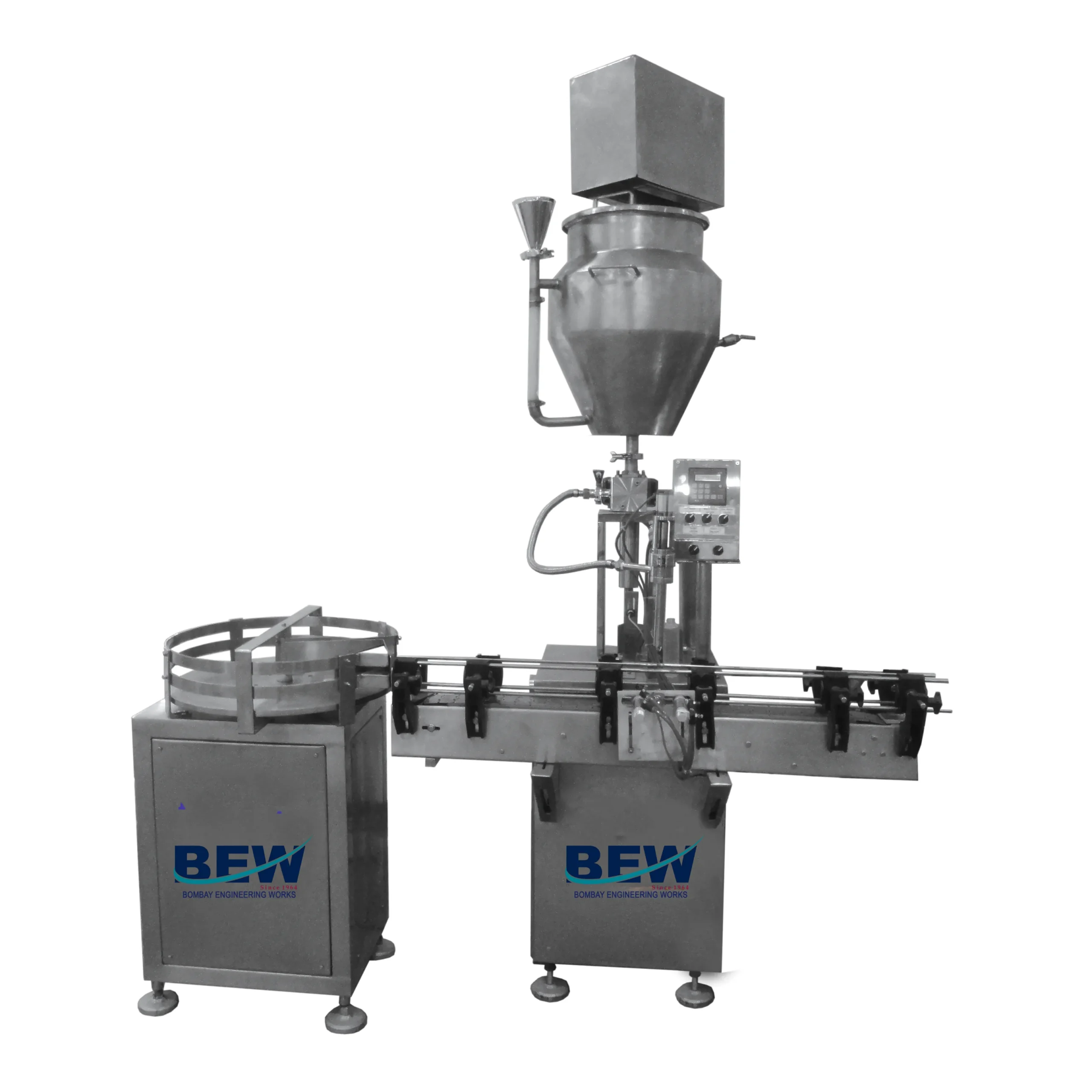 Pressure vessel with an optional S.S. jacket (for sugar coating) and thermostatically controlled heaters Safety valve for pressure control Oscillating-type pneumatic stirrer for uniform mixing Spraying nozzles for precise coating application Compact control panel with a double-acting pneumatic cylinder for intermittent spraying of liquid and air Adjustable spray cycle timing for controlled coating application Filter cum moisture separator to ensure a clean coating process Operation & Mechanism: The Bombay Engineering Mini Cota consists of a pressure vessel, which can be optionally provided with an S.S. jacket for sugar coating, controlled heaters, a safety valve, an oscillating-type pneumatic stirrer, and spraying nozzles. It also includes a compact control panel with a pneumatic cylinder, ensuring precise intermittent spraying controlled by a timer. The coating solution is filled into the pressure vessel and pressurized using oil/moisture-free compressed air at 3 to 4 kg/cm², resulting in a uniform, atomized conical spray. The spray guns, mounted on a heavy-duty S.S. stand, can be adjusted as required. The duration of air and liquid spray is controlled by a digital timer and pneumatic cylinder via a solenoid valve. Available Capacities: 25 liters to 100 liters Whatsapp EnquiryOil Filling Machine