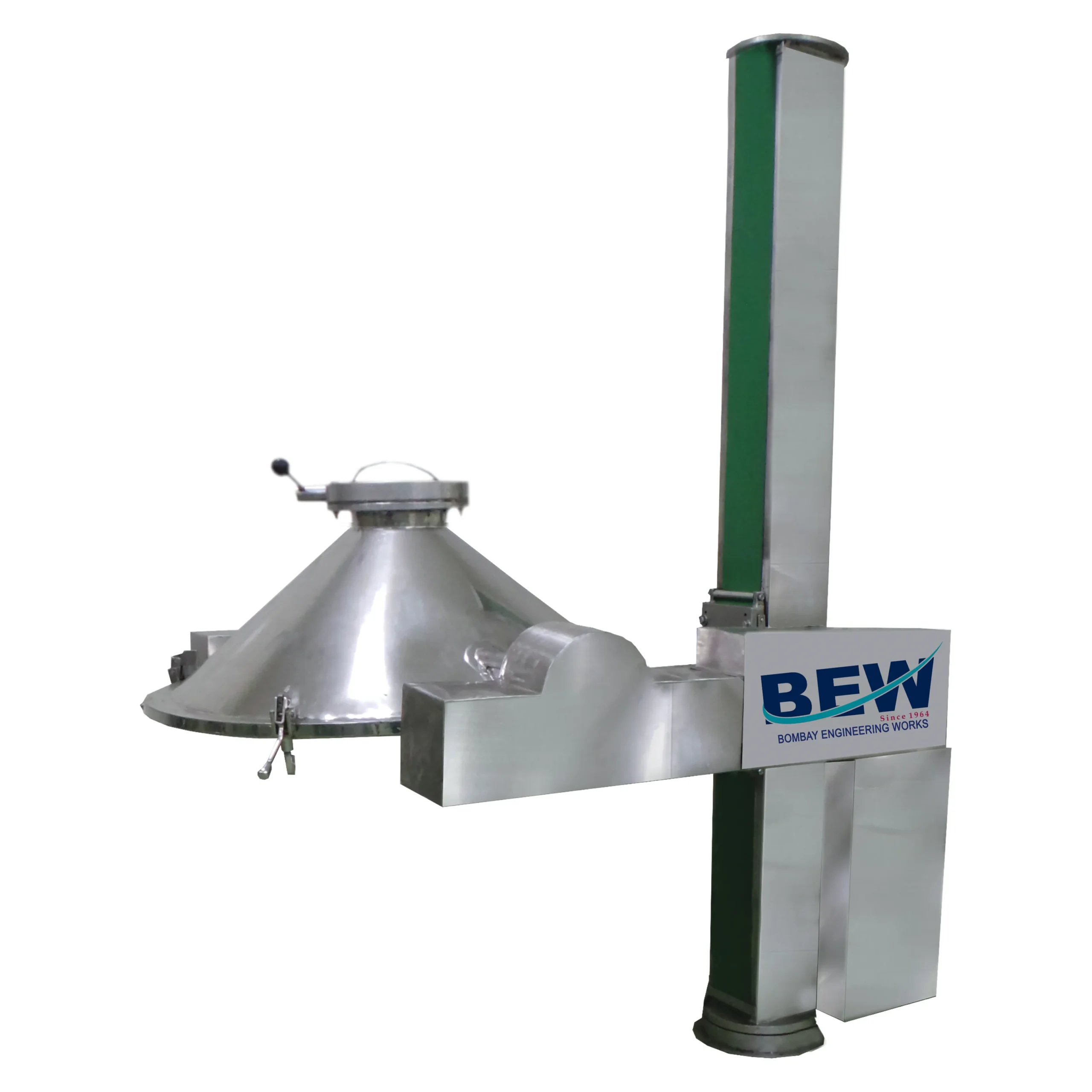 • Tilting arrangement with a single point pivot ensures GMP compliance and ease of operation.
